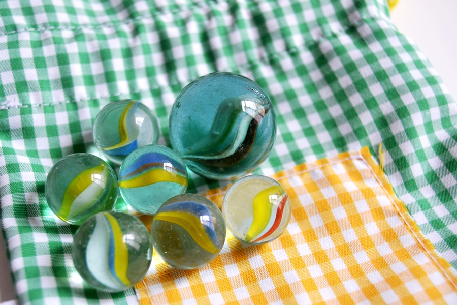 Um saco de tecido com 20 berlindes e 2 "bazucas". Preparados para uma tarde bem passada?