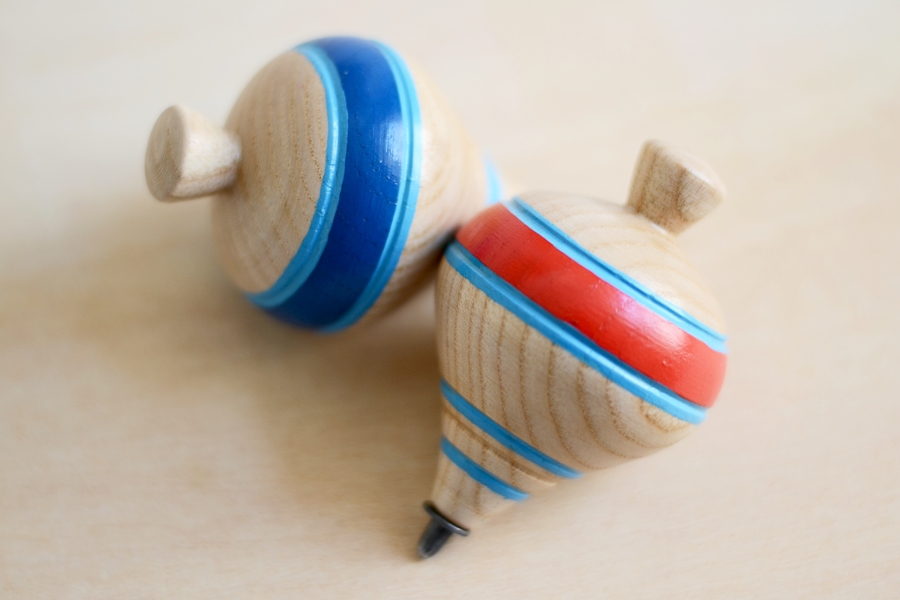 Pião em madeira. Pronto para uma competição amigável e ver quem lança melhor?